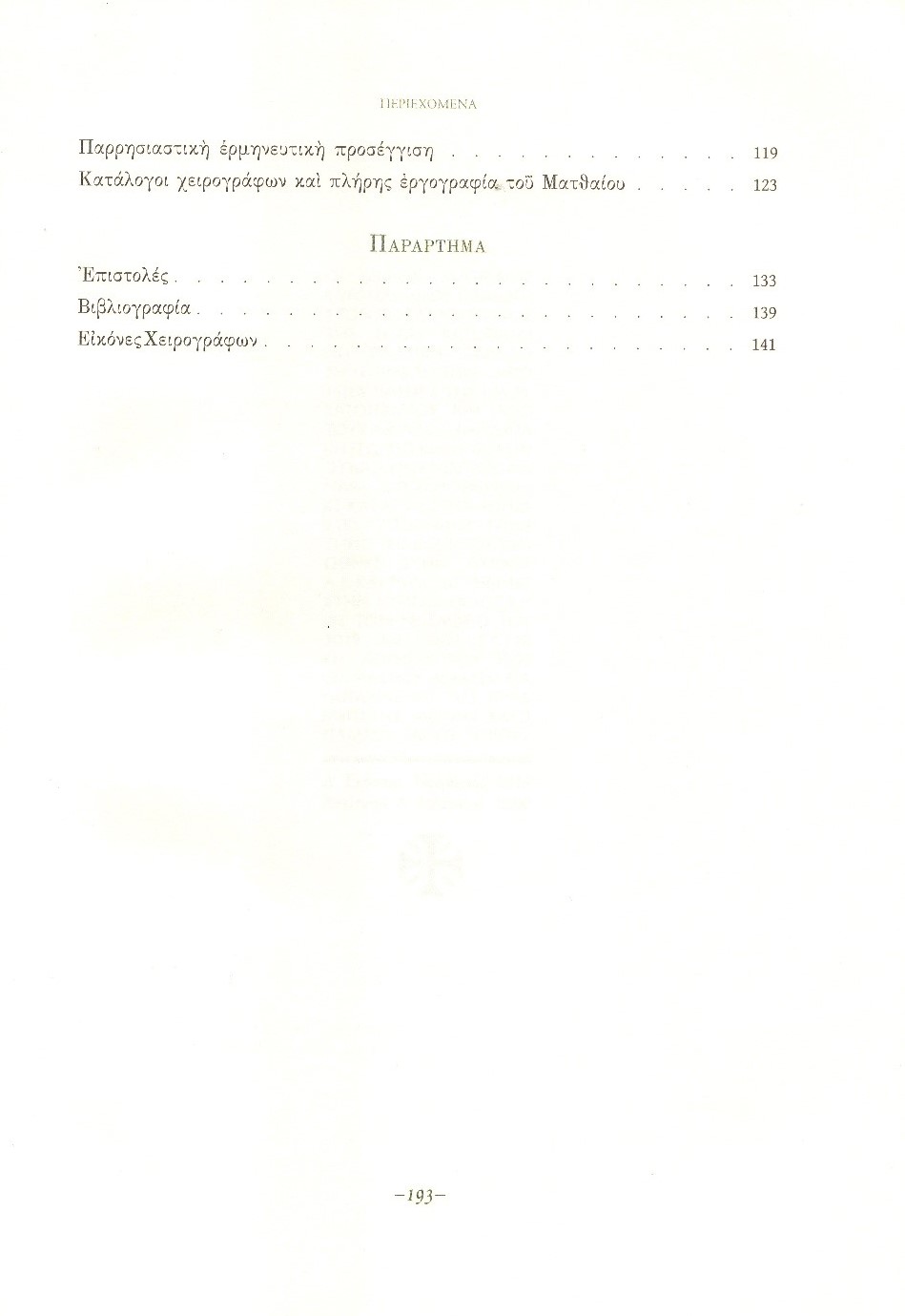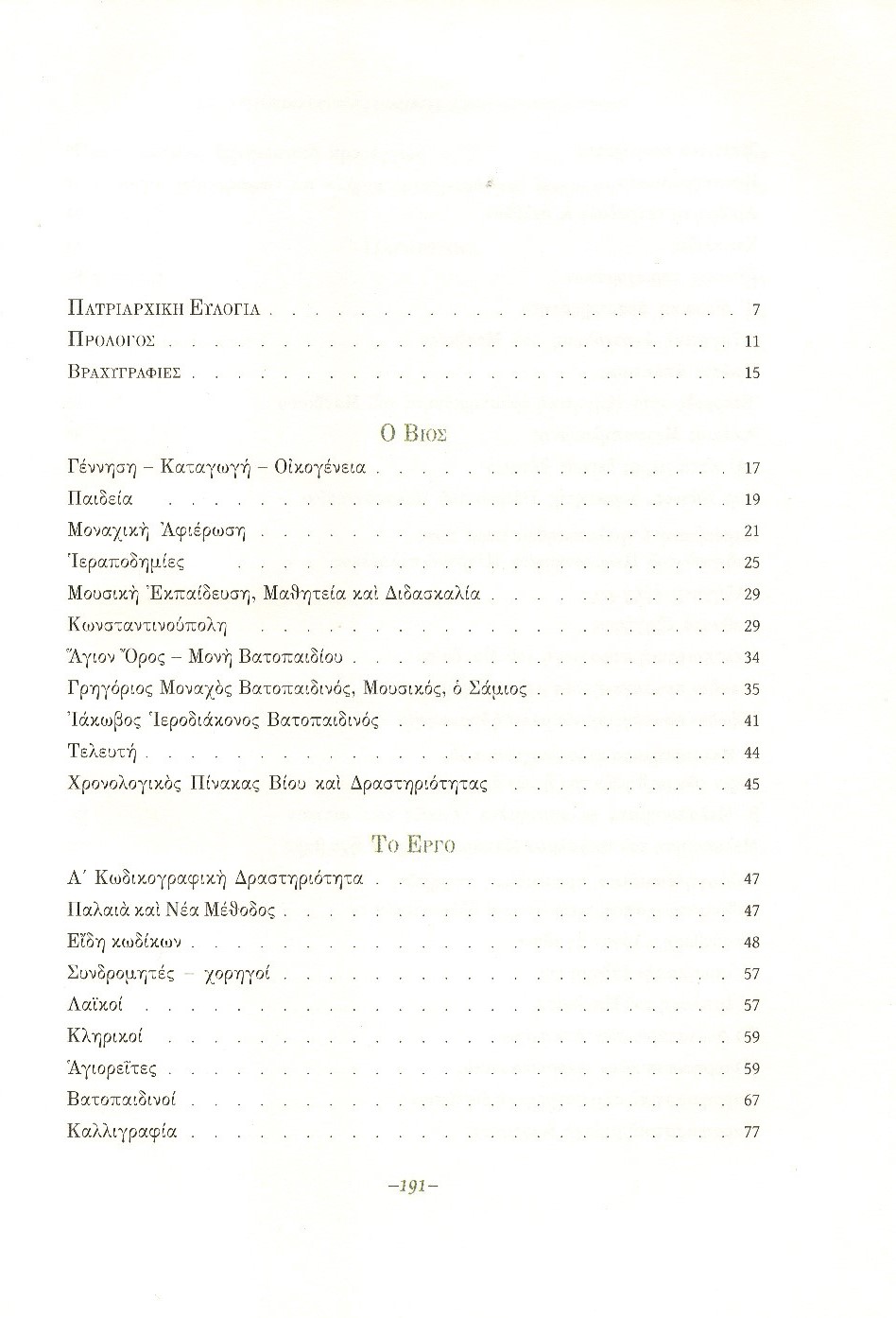 Ἔκδοση τῆς Ἱερᾶς Μεγίστης Μονῆς Βατοπαιδίου [Βατοπαιδινὴ Ψαλτικὴ Παράδοση 9, Ἅγιον Ὄρος 2019], ὅπου καὶ καταχωρίζεται [κατ’ ἐκλογή, ἀλλὰ καὶ δομικὴ καὶ γλωσσικὴ ἀναμόρφωσή του, ἀπὸ τοὺς πατέρες τῆς ἴδιας μονῆς] τὸ οἰκεῖο τμῆμα ἐκ τῆς τρίτομης μονογραφίας μου, ποὺ κατετέθη στὴν Ἱερὰ Μεγίστη Μονὴ Βατοπαιδίου τὸν Φεβρουάριο τοῦ 2016. [Στοιχεῖα τῆς ἐν λόγῳ μονογραφίας: Ματθαῖος Βατοπαιδινός (1774-1849), τόμος Α΄: Ἀναλυτικὸς κατάλογος τῶν αὐτογράφων κωδίκων του, τόμος Β´: Ἡ μουσικὴ ἐργογραφία του, τόμος Γ´: Ὁ ἐν μοναχοῖς προορατικὸς καὶ ἐν μουσικοῖς παρρησιαστικός, Ἀθήνα 2016]. Πρβλ. καὶ σχετικὴ σημείωση στὴ σ. [4] τῆς ἐν λόγῳ ἔκδοσης: