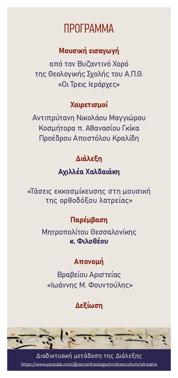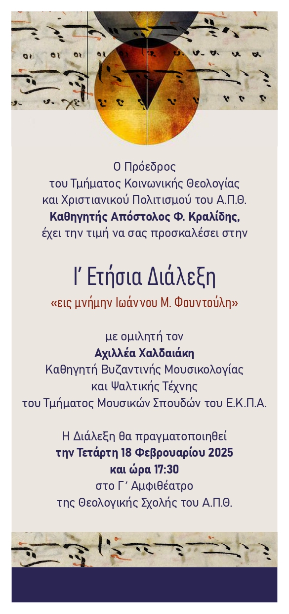 Ιδιαίτερα τιμητική η πρόσκληση από το Τμήμα Κοινωνικής Θεολογίας και Χριστιανικού Πολιτισμού