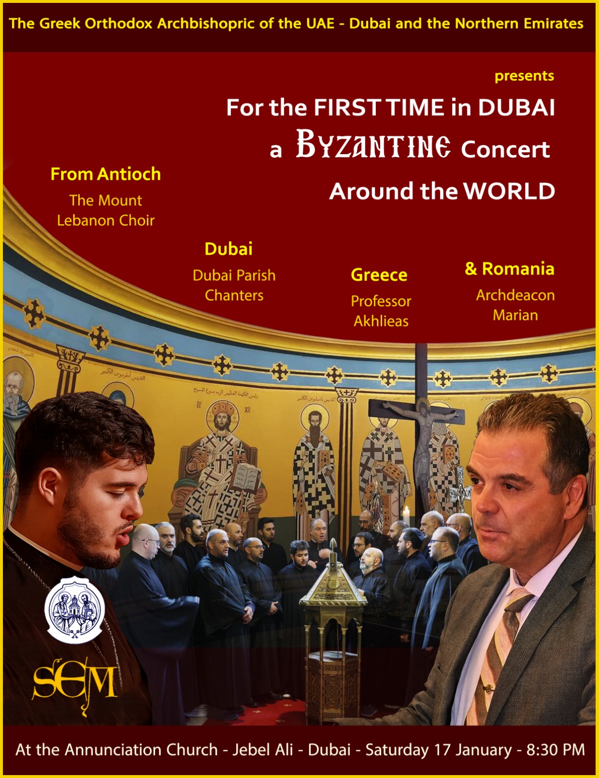 Αυτήν τη φορά, βρεθήκαμε στο Dubai, στον ιερό ναό Ευαγγελισμού της Θεοτόκου, στις 17 Ιανουαρίου 2026, όπου, με επιπλέον προσκεκλημένο τον αρχιδιάκονο Marian από την Ρουμανία, αλλά και μονοφωνάρηδες ψάλτες από τον Λίβανο, την Συρία και το Dubai, παρουσιάσθηκε, μάλιστα δε για πρώτη φορά στη συγκεκριμένη μεγαλούπολη των Ηνωμένων Αραβικών Εμιράτων, ο «ποικιλόγλωσσος ήχος» της ορθόδοξης προσευχητικής αναφοράς.
