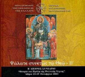 - Τὸ ἴδιο κείμενο καὶ σὲ φυλλάδιο συνημμένο στὸν διπλὸ ψηφιακὸ δίσκο Ψάλατε συνετῶς τῷ Θεῷ-Β’ [Β’ Διεθνὲς Συνέδριο Μουσικολογικὸ καὶ Ψαλτικὸ “Θεωρία καὶ Πράξη τῆς Ψαλτικῆς Τέχνης”. Τὰ Γένη καὶ Εἴδη τῆς Βυζαντινῆς Ψαλτικῆς Μελοποιίας. Ἀθήνα 15-19 Ὀκτωβρίου 2003. Χρονικὸ καὶ Ψάλματα, Ἀθήνα 2005], σσ. 8-19.