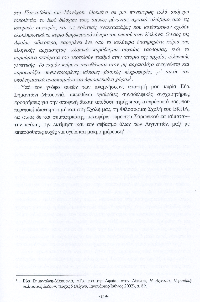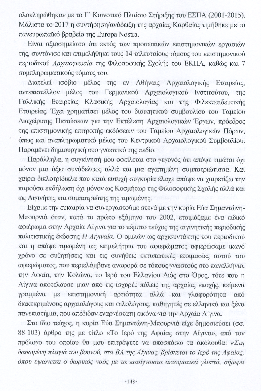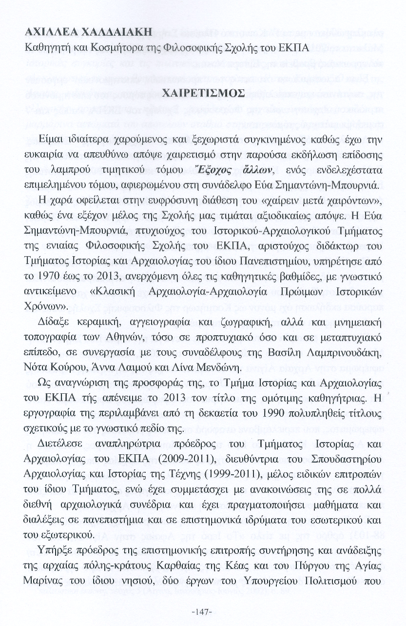 Χαιρετισμός κατά την επίδοση τιμητικού τόμου στην Εύα Σημαντώνη-Μπουρνιά (6 Μαρτίου 2023)