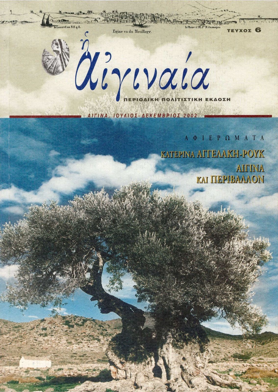 Ἡ Αἰγιναία. Περιοδικὴ πολιτιστικὴ ἔκδοση, τεῦχος 6, Αἴγινα, Ἰούλιος-Δεκέμβριος 2002, [Ἀφιερώματα: Κατερίνα Ἀγγελάκη Ρούκ – Αἴγινα καὶ Περιβάλλον], σσ. 160