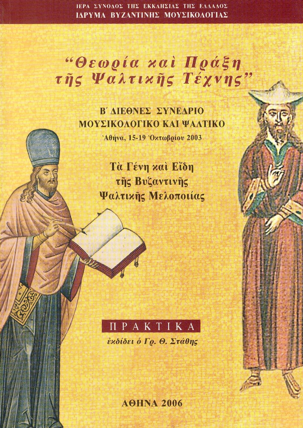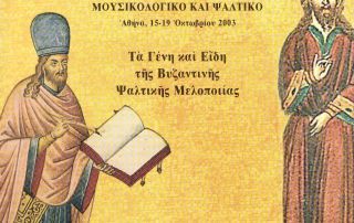 Α’ Διεθνὲς Συνέδριο Βυζαντινῆς Μουσικῆς. Διαπανεπιστημιακὴ συνεργασία: Ἔρευνα-Ἐκπαίδευση-Καλλιτεχνικὸ ἔργο, Κέντρο ἐκκλησιαστικῆς μουσικῆς-Βυζαντινὴ λειτουργικὴ σκηνή, Θεσσαλονίκη, 30-31 Ὀκτωβρίου 2003