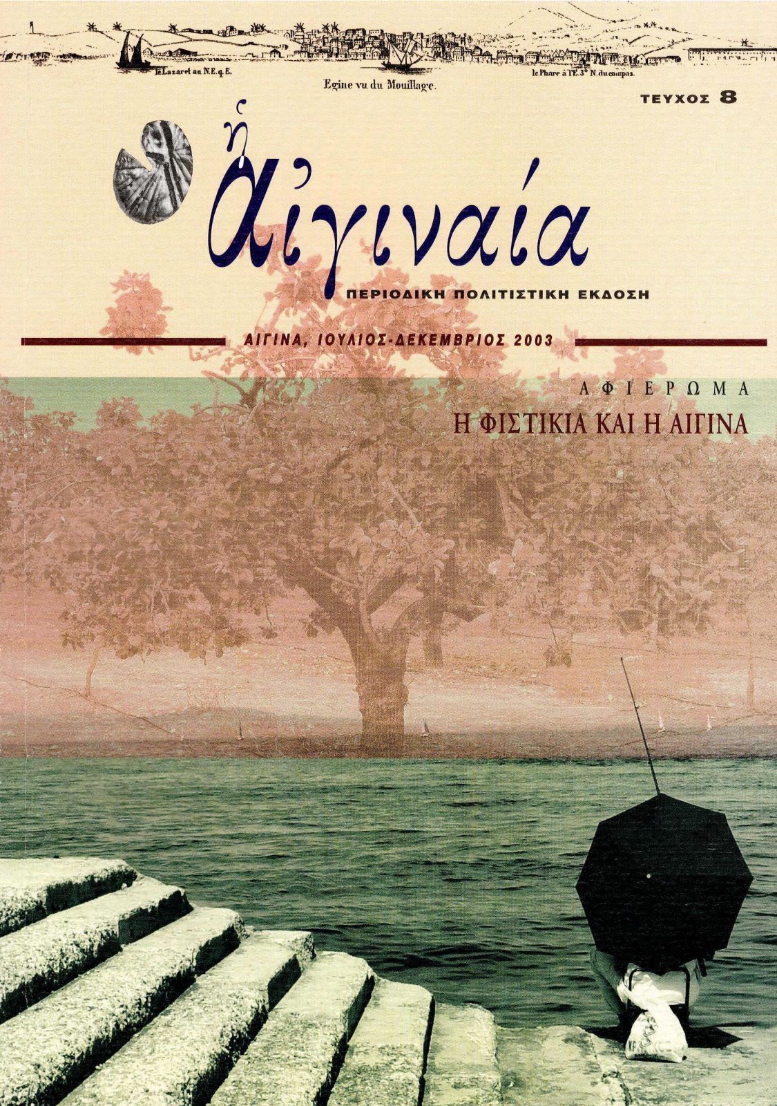Ἡ Αἰγιναία. Περιοδικὴ πολιτιστικὴ ἔκδοση, τεῦχος 8, Αἴγινα, Ἰούλιος-Δεκέμβριος 2003 [Ἀφιέρωμα: Ἡ Φιστικιὰ καὶ ἡ Αἴγινα], σσ. 160