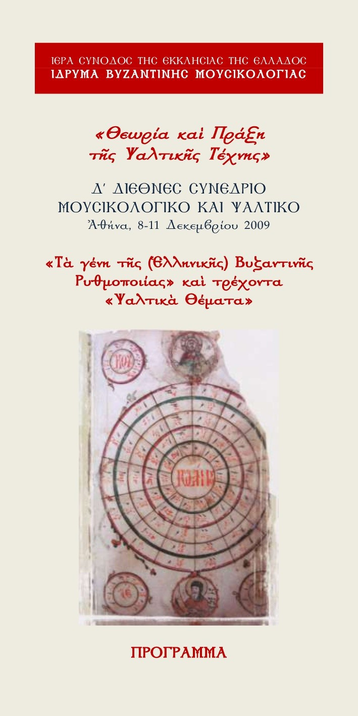 Δ΄ Διεθνὲς Συνέδριο Μουσικολογικὸ καὶ Ψαλτικό. «Θεωρία καὶ Πράξη τῆς Ψαλτικῆς Τέχνης» – «Τὰ Γένη τῆς Ρυθμοποιίας καὶ τρέχοντα ψαλτικὰ θέματα». Ἀθήνα, 8-11 Δεκεμβρίου 2009