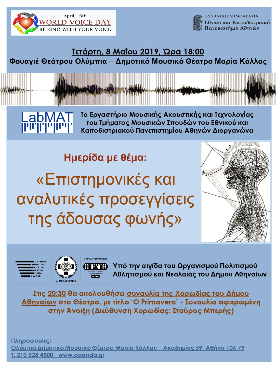 Ομιλία, εισαγωγική στην ημερίδα του Τμήματος Μουσικών Σπουδών: Επιστημονικές και Αναλυτικές Προσεγγίσεις της Άδουσας Φωνής (8 Μαΐου 2019)