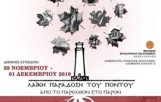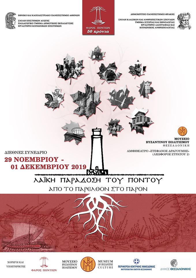Διεθνές Συνέδριο: Λαϊκή Παράδοση του Πόντου-Από το Παρελθόν στο Παρόν ~ Παιδαγωγικό Τμήμα Δημοτικής Εκπαίδευσης ΕΚΠΑ: Εργαστήριο Κοινωνικών Επιστημών – Τμήμα Ιστορίας και Εθνολογίας ΔΠΘ: Εργαστήριο Λαογραφίας και Κοινωνικής Ανθρωπολογίας – Φάρος Ποντίων (Θεσσαλονίκη, 29 Νοεμβρίου-1 Δεκεμβρίου 2019)