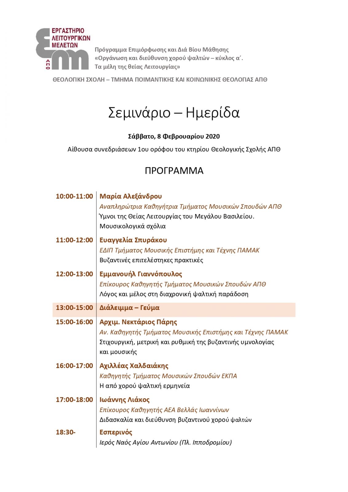 Η από χορού ψαλτική ερμηνεία ~ Ομιλία σε Σεμινάριο-Ημερίδα του Εργαστηρίου Λειτουργικών Μελετών του Τμήματος Ποιμαντικής και Κοινωνικής Θεολογίας του ΑΠΘ ~ Θεσσαλονίκη, 8 Φεβρουαρίου 2020