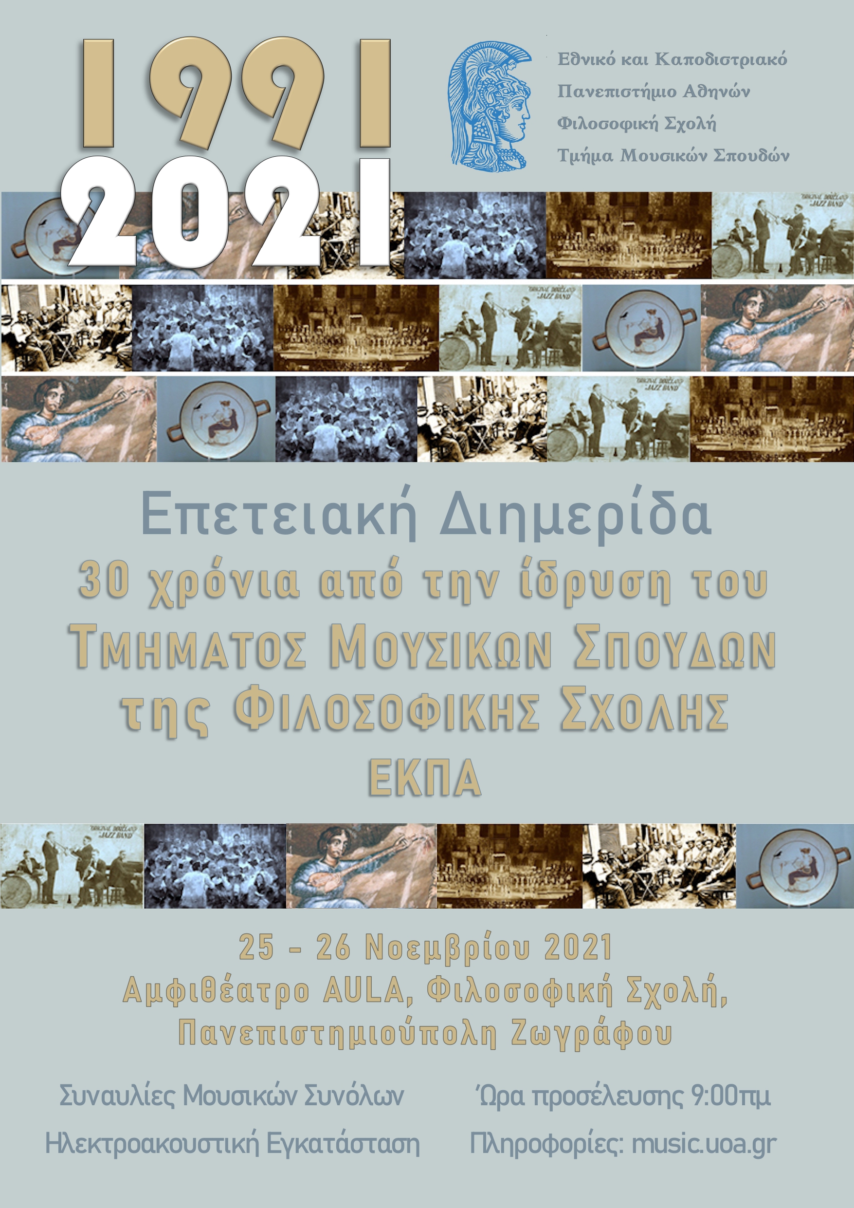 Συμμετοχή στην Επετειακή Διημερίδα “30 χρόνια από την ίδρυση του Τμήματος Μουσικών Σπουδών της Φιλοσοφικής Σχολής ΕΚΠΑ” (Αθήνα, 25-26 Νοεμβρίου 2021)