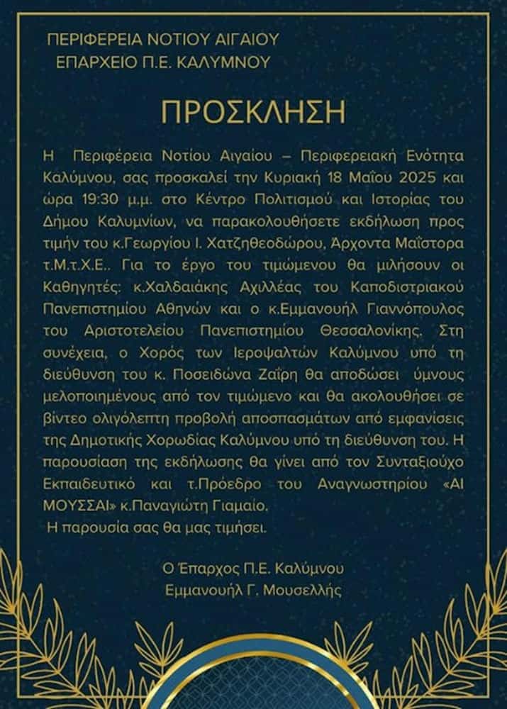 Ομιλία σε τιμητική εκδήλωση για τον Γεώργιο Χατζηθεοδώρου_Κάλυμνος, 18 Μαΐου 2025