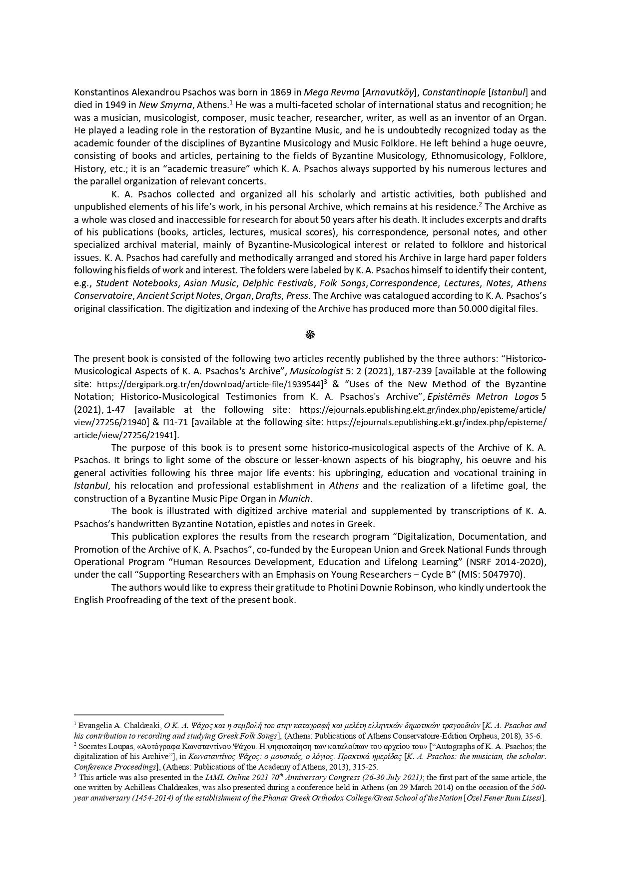 K. A. Psachos’s Archive: Historico-Musicological Testimonies