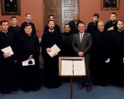 Ερμηνεία του Πολυχρονισμού της ΑΘΠ του Οικουμενικού Πατριάρχου κ. Βαρθολομαίου του Α’ με τον χορό ψαλτών “Οι Μαΐστορες της Ψαλτικής Τέχνης” (Αθήνα, 23 Νοεμβρίου 2021, κεντρική αίθουσα ΕΚΠΑ)